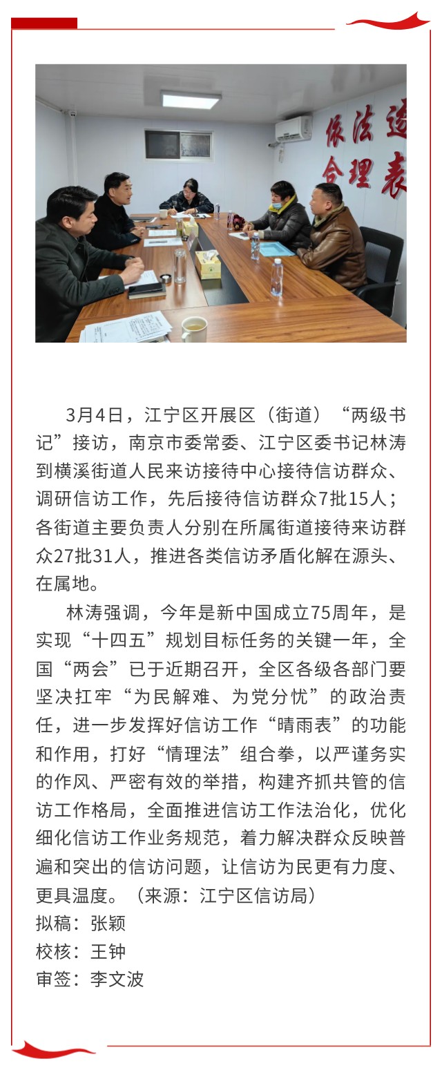南京市委常委、江宁区委书记林涛接待信访群众、调研信访工作