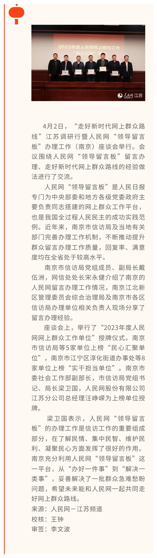 人民网“领导留言板”办理工作(南京)座谈会举行