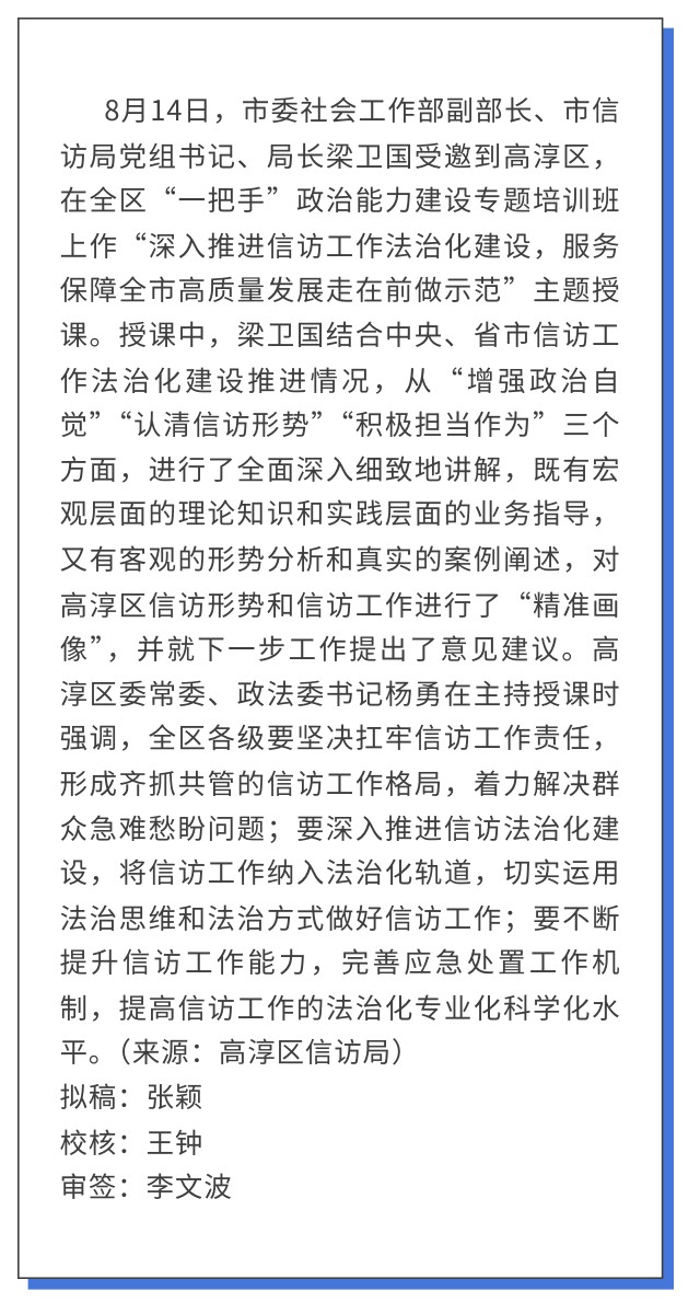 梁卫国到高淳区作信访工作法治化建设专题授课