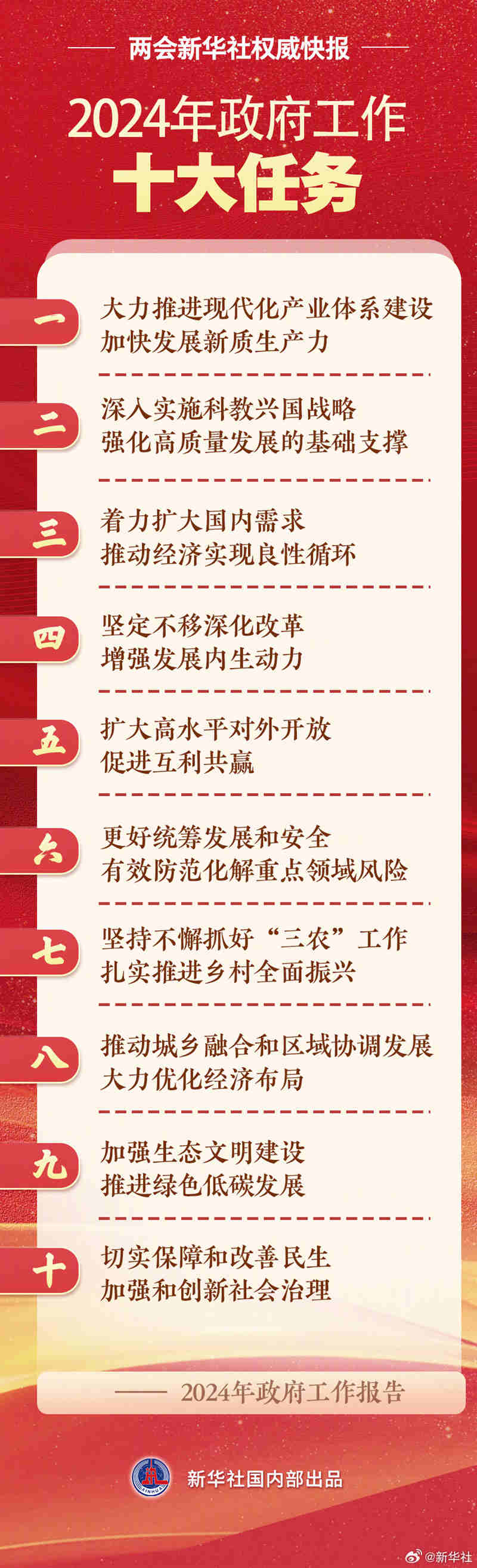 两会新华社权威快报丨2024年政府工作十大任务