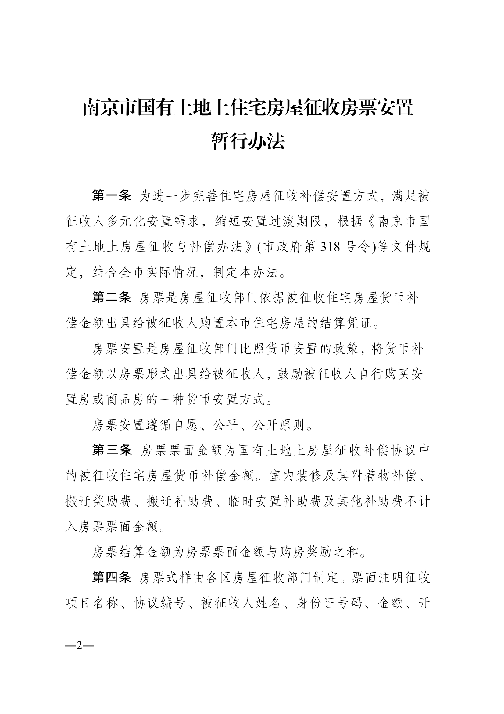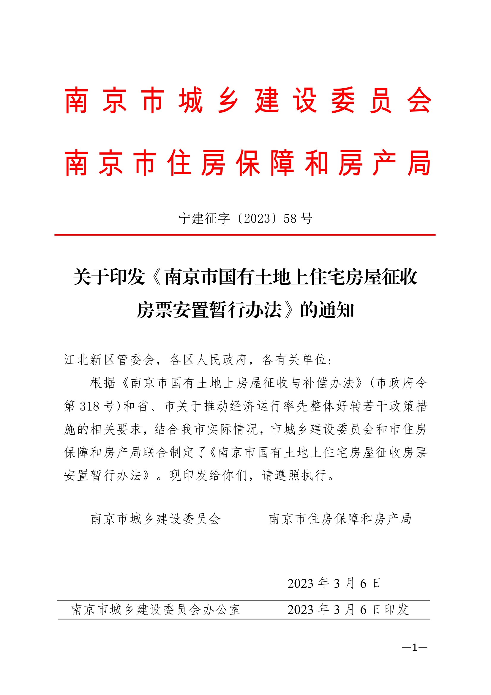 信息名称: | 关于印发《南京市国有土地上住宅房屋征收房票安置暂行办法》的通知 | ||